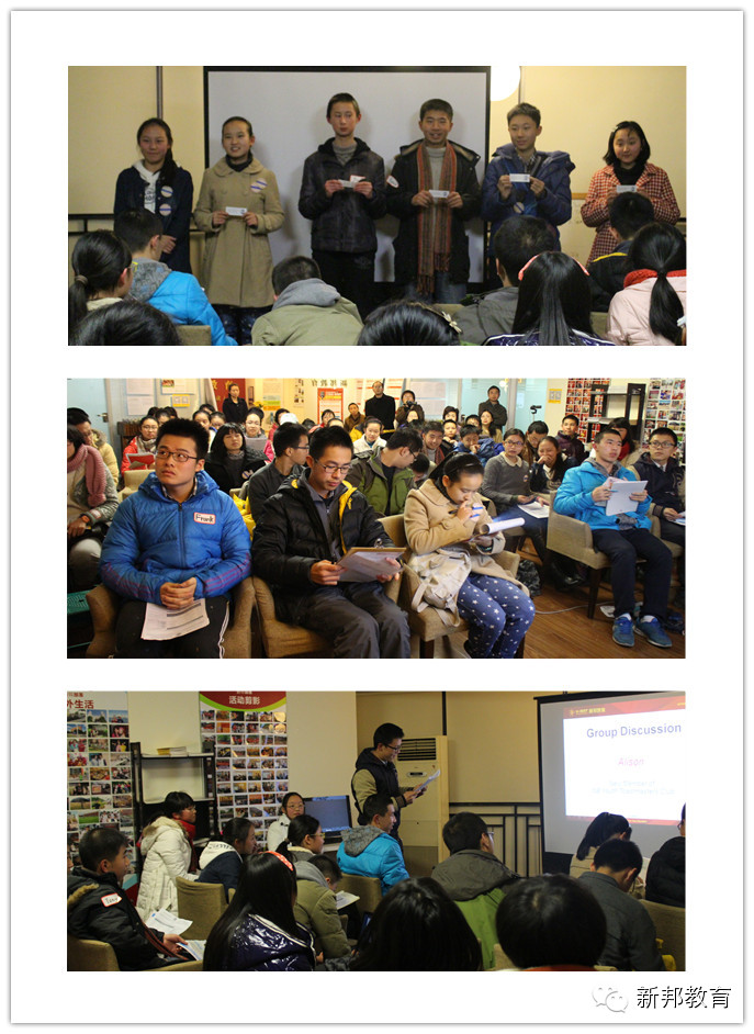 l 活动时间:2014年1月24日周六18:00p.m.-20:00 p.m. l 活动地点:新邦教育(致民路36号锦江新园701) l 到场时间:会议下午6点准时开始,会员请于5:45前到达会场,第一次参加的同学,有角色的同学,预约面试的同学请5:00到场 欢迎爱好英语、希望锻炼自己演讲能力和组织能力的同学们积极参与! 新邦演讲俱乐部QQ群(群号:141706726) 成都新邦教育(微信号:XinBangJiaoYu) 新邦教育官方网站:http://www.xinbangedu.net |