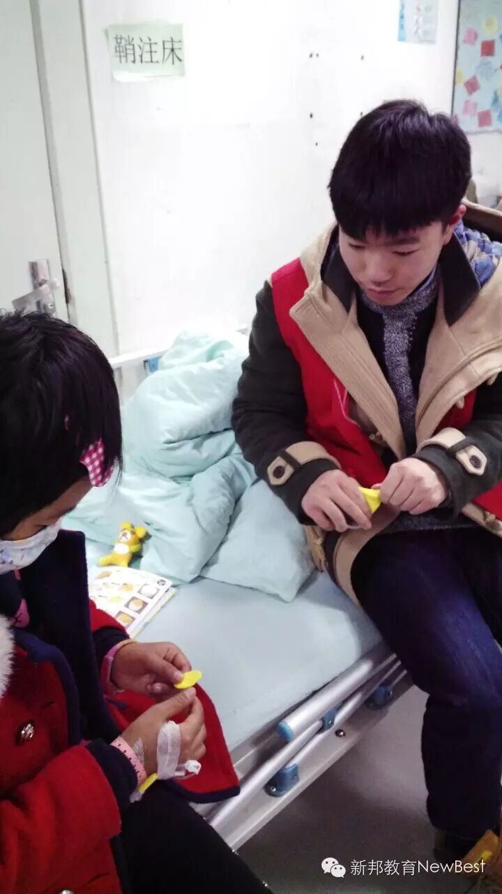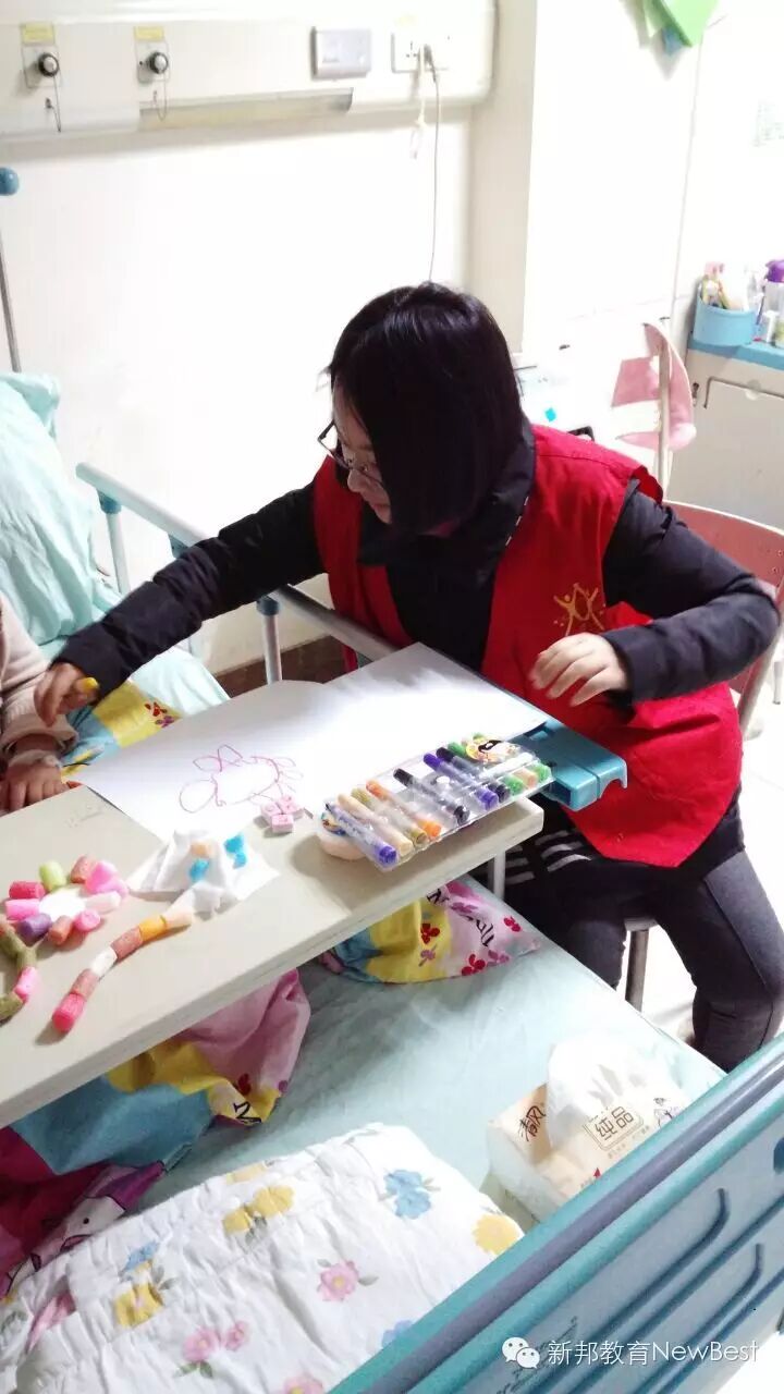 本次公益活动是在我们新邦小义工郑伊雯同学的积极推荐下,由新邦义工与四川大学sunny dreamer义工组织合作,在寒暑假为华西附二院的白血病孩子们带去关爱和欢乐的一档活动,从2016年1月份开始,每年寒暑假将定期举行。