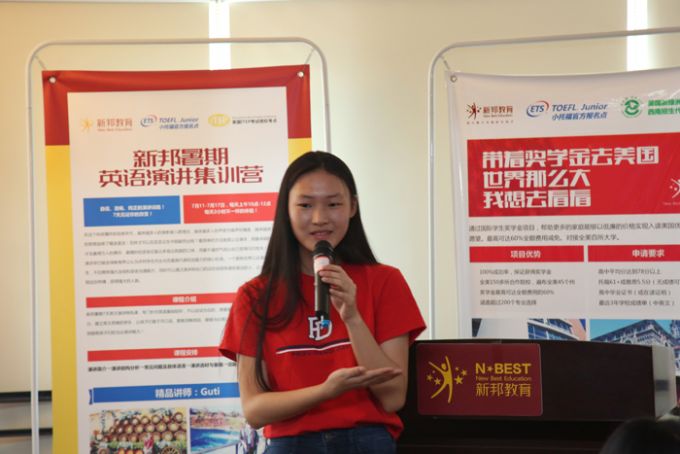 活动在新邦的Guti老师的领导下拉开了帷幕,第一位分享嘉宾Brenda被加州加州大学欧文分校录取,为大家分享了自己在美国的学习经历、与住家的相处以及如何申请大学。