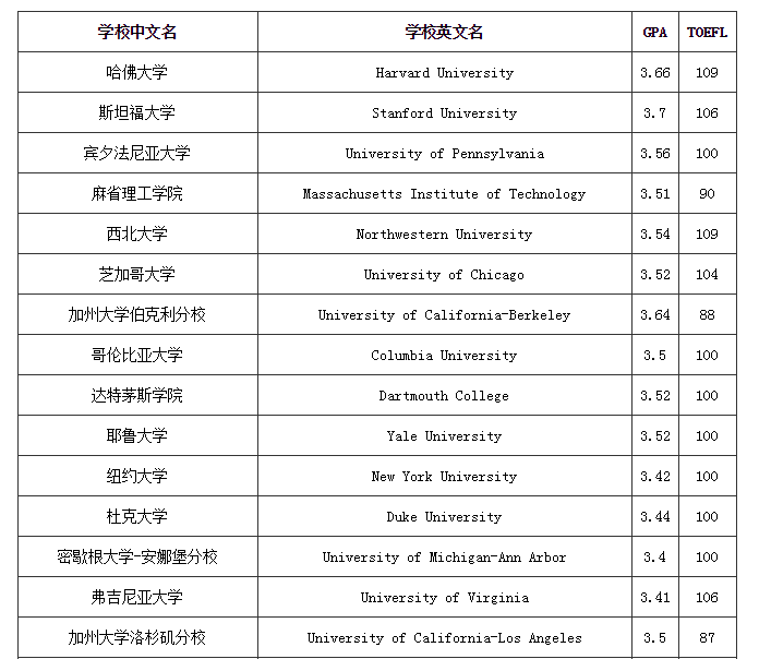 美国TOP100大学对GPA要求